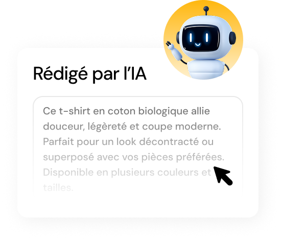Générez et enrichissez automatiquement vos contenus produits à partir d’une référence, de ses caractéristiques techniques ou même de ses photos.